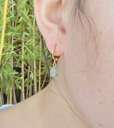 Ces boucles d’oreilles sont en plaqué or et en pierres naturelles. Elles ont été fabriqué dans mon atelier du sud de la France.